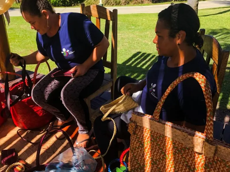 O projeto é organizado pelo Instituto Berimbau, uma parceria feita por meio da Copartt (Cooperativa de Artesanato de Trançado Tupinambá) e que oferece a prática de oficinas de trançado em palha de piaçava com artesãs.