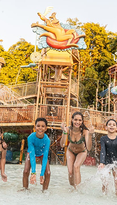 O maior playground aquático para famílias! O Hotibum possui 5.400 m² de pura diversão, com duas piscinas, oito toboáguas e mais de 200 brinquedos, como jatos, sprays, rodas e cortinas d'água. Tudo pensado para surpreender a família inteira.