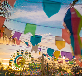 Salgados e doces tradicionais, pipoca, churros, algodão-doce e outros quitutes completam a experiência, criando aquele clima irresistível de feira, festa e celebração.